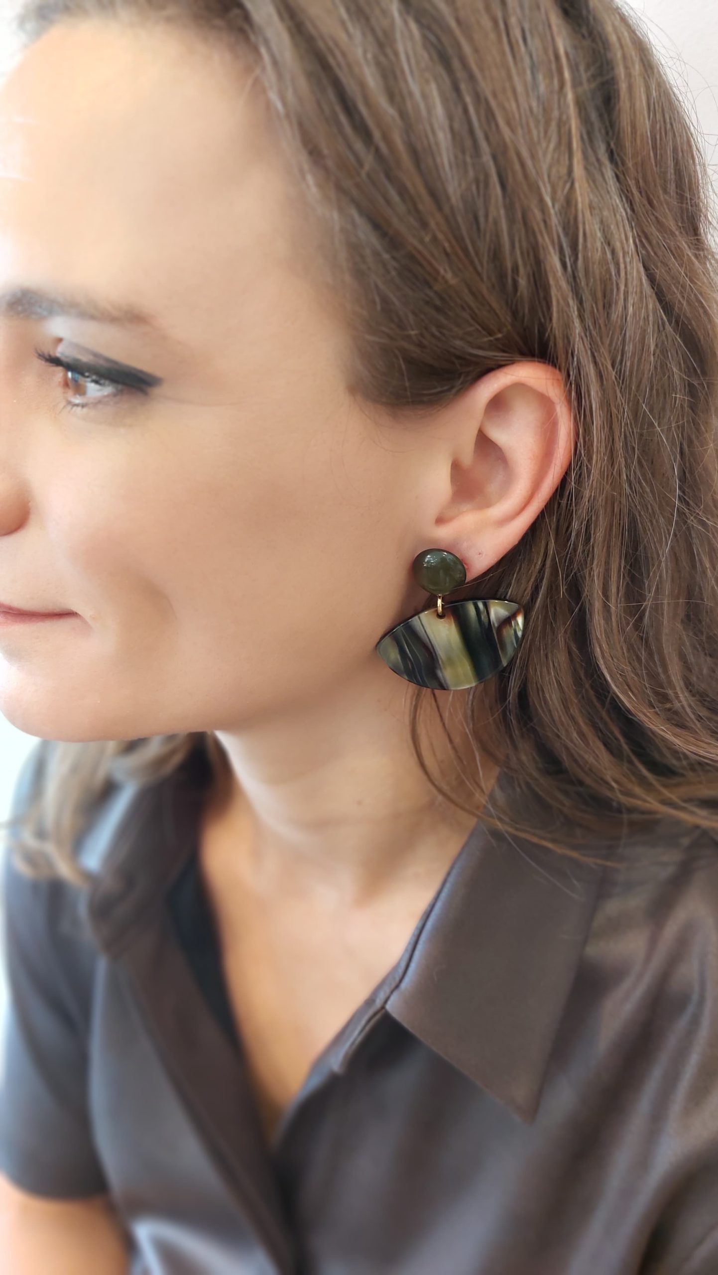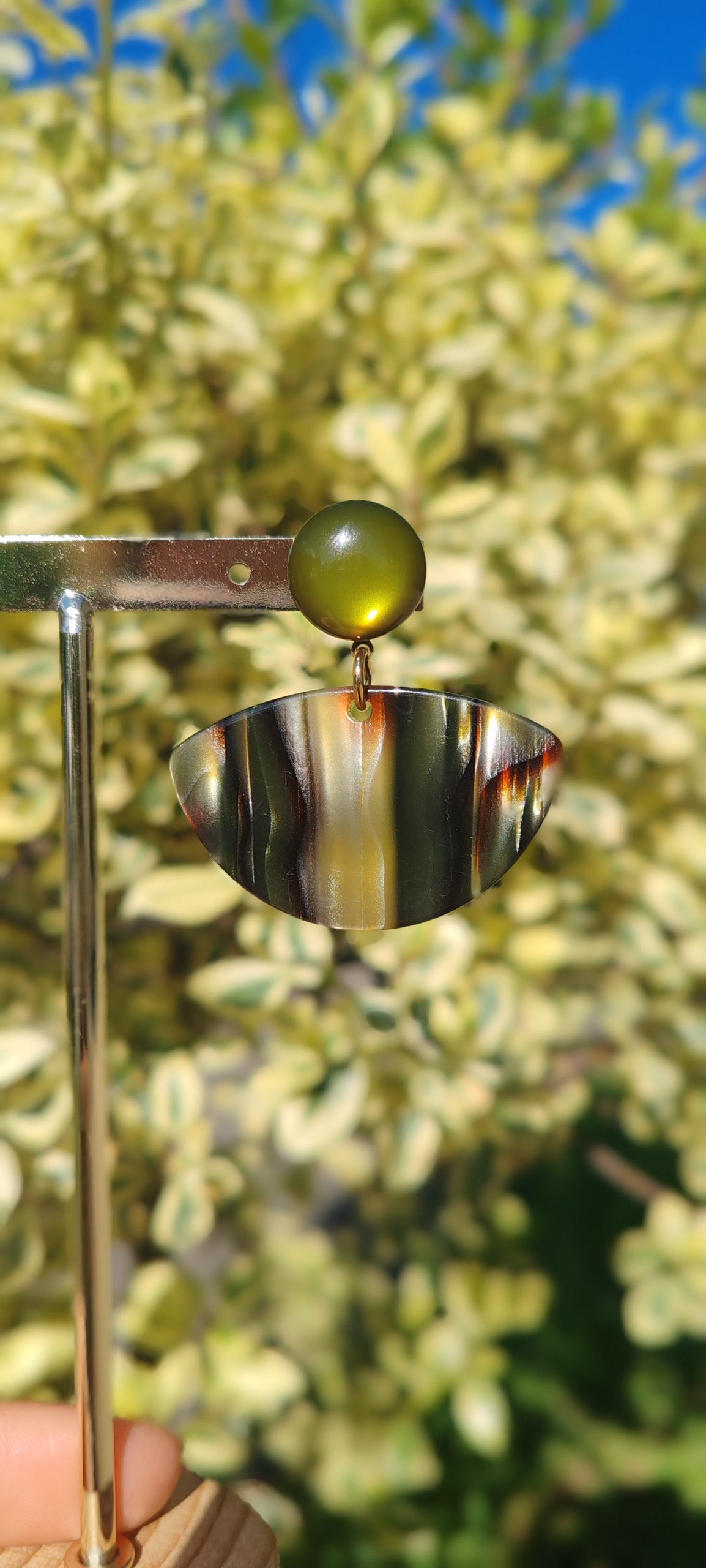 Couleur : onyx marbré beige et marron, cabochon vert pomme.